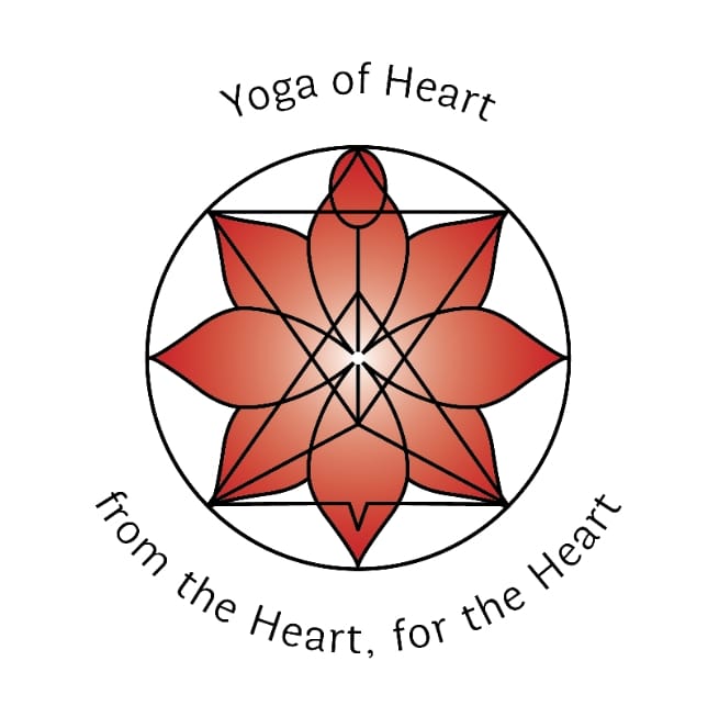 The Logo of Yoga of Heart is based on a visualizing meditation using the unfolding of the lotus of Heart (hrdaya-pundarika) in all eight directions. The three colours – black, red and white – symbolize the three basic qualities of nature: inertia (tamas), activity (rajas) and brightness (sattva). The downward and upward pointing triangles interpenetrating each other represent the union of all opposites, especially the union of inhale as receptivity from above and exhale as strength from below. The human body, lotus flower and geometrical form are all united in the innermost drop of Life (bindu) expressing the flowering of human divinity at all levels of existence: individual sensitivity, interactive compassion and spiritual immersion.